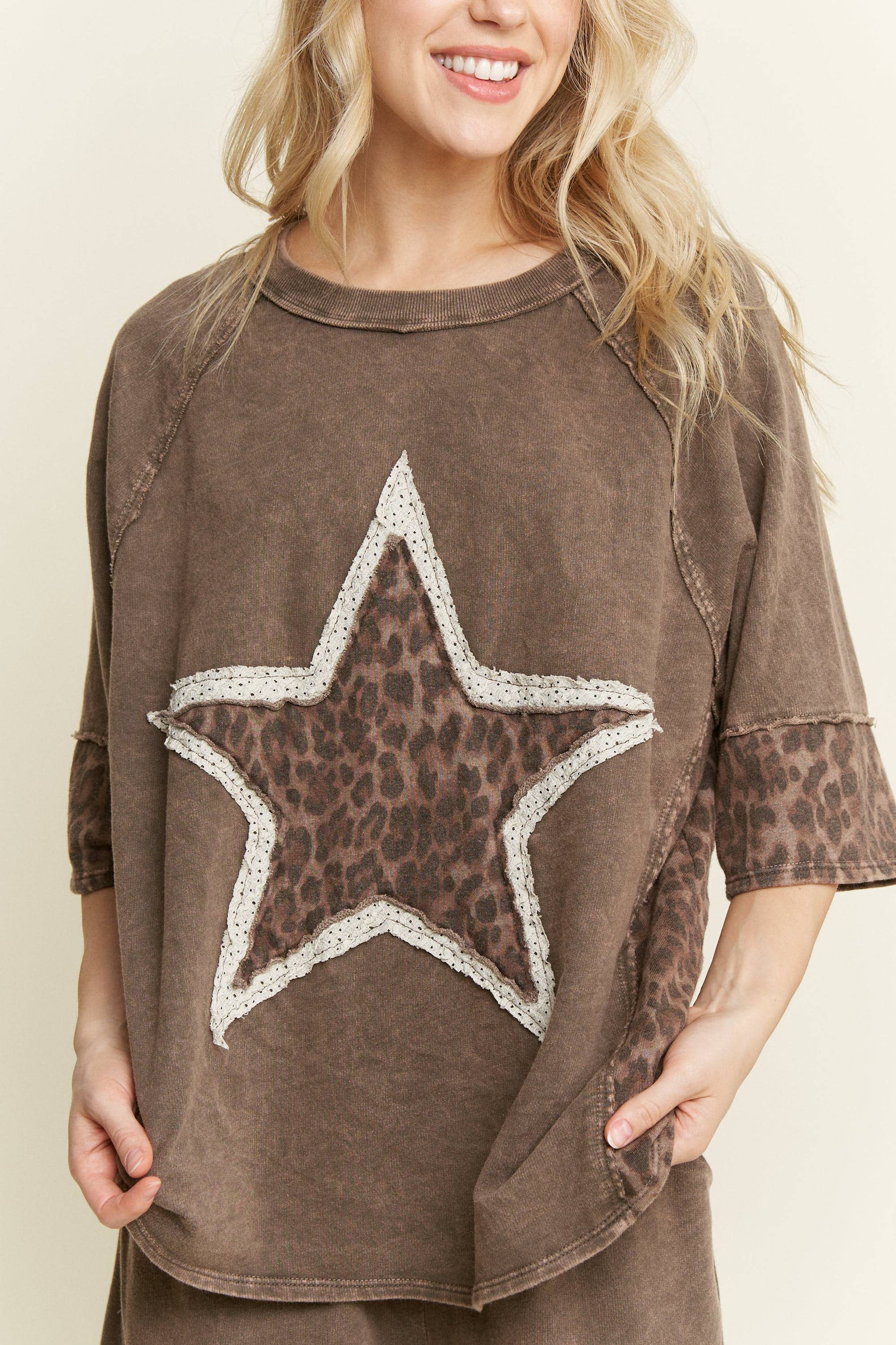 Mineral Washed Leopard Lace Star Halfsleeve top